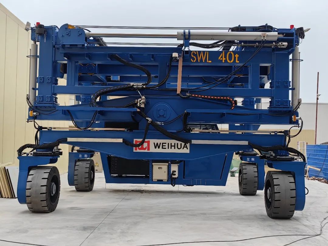 WHKYC40型集装箱多功能跨式运输车(以下简称跨运车)是河南JNTY江南基于现代前沿技术自主研发的新一代集装箱装卸设备。整车由锂电池供电,电动机提供动力,全液压驱动,运行平稳,无噪音无污染。