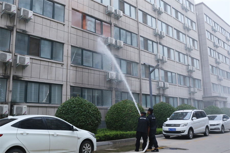 本次演练模拟公司宿舍楼突发火灾触发警报,相关人员进行火场疏散逃生场景。参训人员分为疏散警戒组、灭火救援组,演练内容包括火灾信息监控、人员疏散、现场灭火处置等。