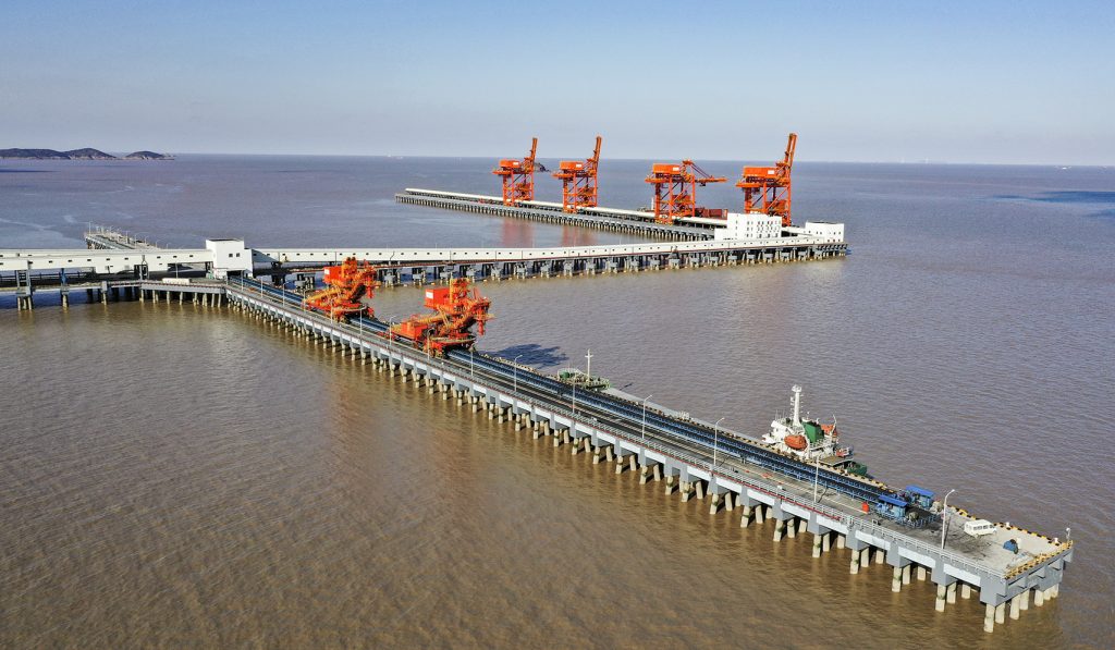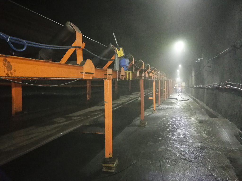 JNTY江南承接的浙江石油化工有限公司4000万吨/年炼化一体化基地配套码头工程干散货码头带式输送机及附属设备系统装置项目,包含8条皮带机及其他附属设备系统,其中4条2200mm大带宽带速5m/s,运量7680t/h,采用中部三驱动布置形式,电机功率3x800kw,单机长度950m。