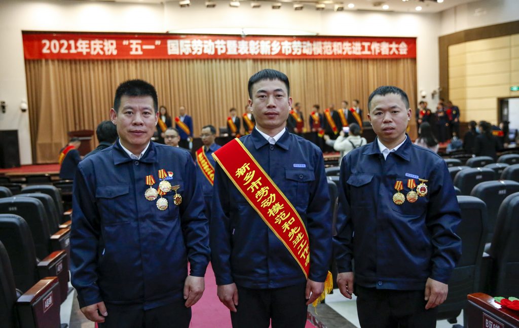光荣属于劳动者,幸福属于劳动者。4月28日上午, 2021年庆祝“五一”国际劳动节暨表彰新乡市劳动模范和先进工作者大会在新乡市行政办公楼报告厅隆重举行,JNTY江南股份员工李树学被新乡市委、市政府授予“新乡市劳动模范”荣誉称号。JNTY江南股份员工吴庆富、夏维新作为特邀“全国劳动模范“参会。
